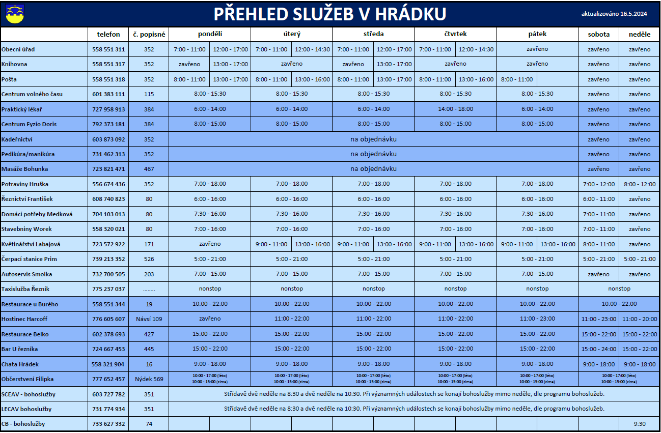 Přehled služeb v Hrádku